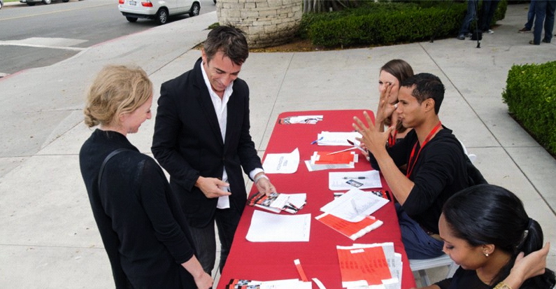 Checking in guests at the festival